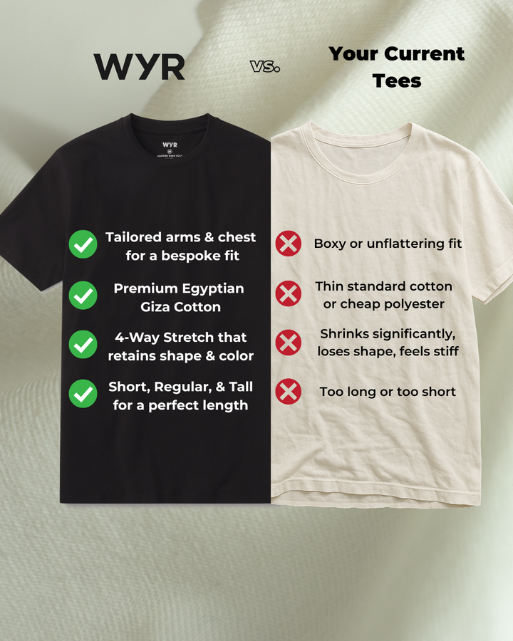 Skip the cheap materials, generic sizing, mass-produced, overpriced clothing. We invest in quality fabric & fit to elevate your wardrobe essentials.